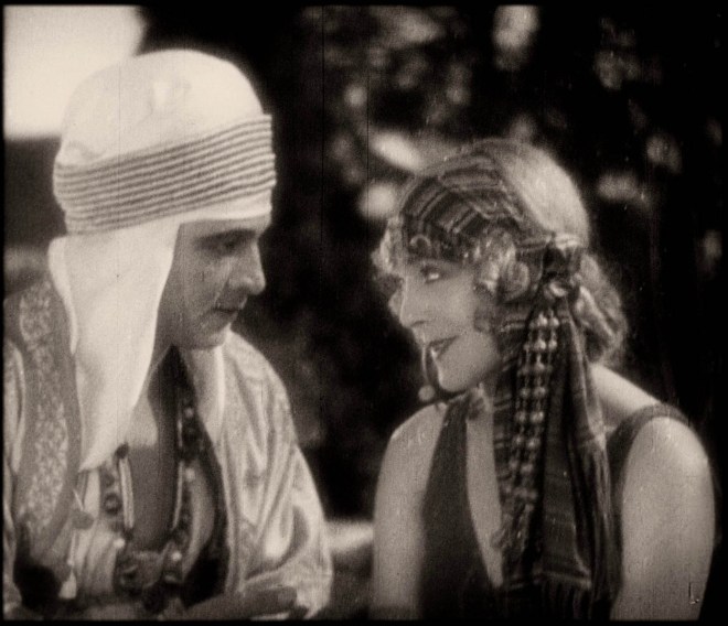 Valentino plays Ahmed, the spoiled son of Sheik Ahmed Ben Hassan and Diana, his English wife. Ahmed has been carrying on a secret love affair with a dancer named Yasmin (lovely Vilma Banky). Yasmin’s father, Andre (George Fawcett) is a Frenchman who leads a renegade band of entertainers. They moonlight as bandits but it is honest Yasmin’s dancing that supports them.