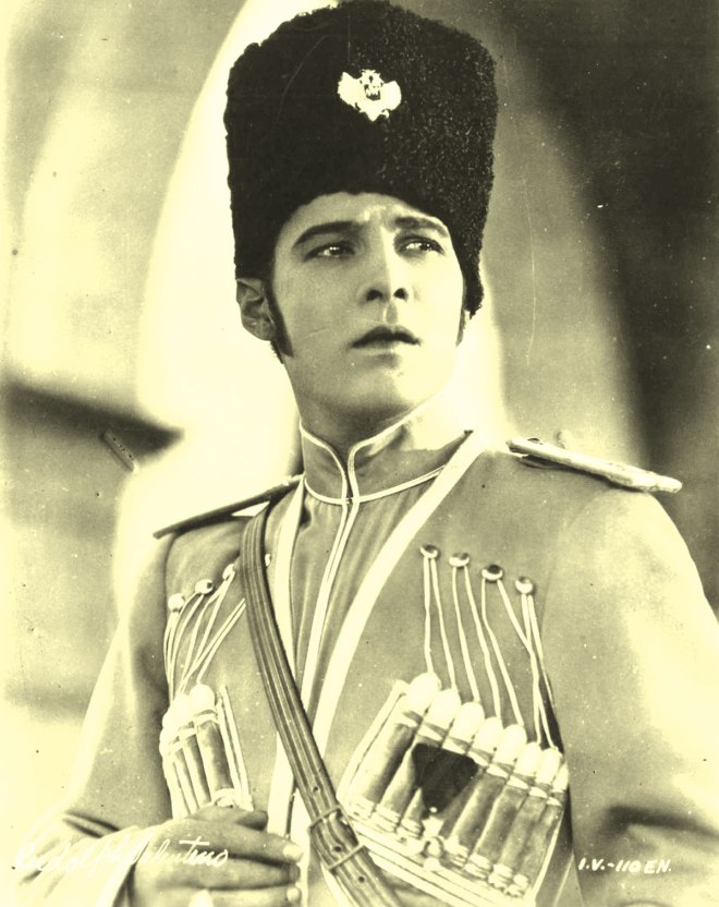 Set in Russia during the reign of Catherine the Great,The Eagle opens with Lieutenant Vladimir Doubrovsky (Valentino, looking smashing in his Cossack gear) saving a runaway carriage. The carriage contains the beautiful Mascha Troekouroff (Vilma Banky) and she is charmed by her handsome savior.