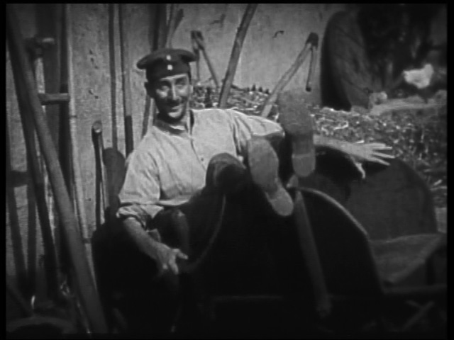 The kid with the cough passes away in the night and Oscar has taken his place. Now if I had someone who looked like Clive Brook show up to work on my farm, I would definitely take notice. Mona is clearly made of sterner stuff than me. She barely acknowledges Oscar until he surprises her by speaking excellent French. Mona decides that he must have been a spy. Oscar isn’t angry. He isn’t indignant. He ishurt. He simply denies her accusation and leaves. Mona isn’t sure how to react. What can you do if the Hun refuses to fight?