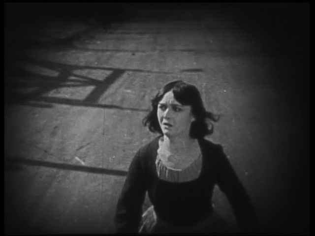 Mona’s sympathy for the Germans and affection for Oscar are becoming more and more obvious to the general public. In one scene of very fine acting, Pola Negri is being insulted by her neighbors after helping Oscar. She breaks through the crowd only to be faced with the German prisoners cheering her from behind the barbed wire. Mona begins to run but she cannot escape the jeers behind her and the applause in front of her. It’s a beautiful illustration of her inner conflict.