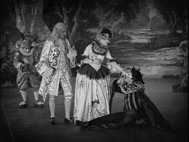 Climene (Edith Allen) is similarly pushed to the sidelines. According to Photoplay, Miss Allen was vocally disappointed that she was not given a bigger role in this, her film debut. If that is true, it is no wonder that she only made one more credited screen appearance. Diva behavior will be tolerated from stars but not from newbies. That being said, Allen is quite good as the grasping actress who attracts the attention of both Andre-Louis and the Marquis.