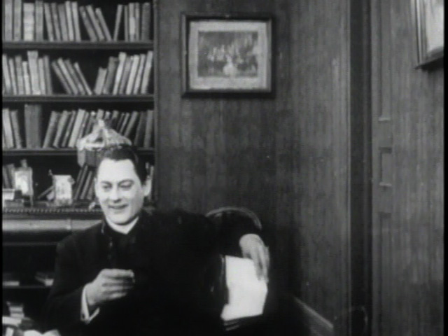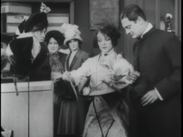Just one thing to note before we begin: In films of this period, characters were often not given names and were merely referred to by their professional titles or by some descriptive word like Boy, Father, Gossip or even something colorful like The Little Disturber. Only one character has a name in The New York Hat so I will be using the names of the performers to refer to their characters just to make things easier. Later versions of this film have added character names but they are not used in the version I viewed. No need to make things confusing.