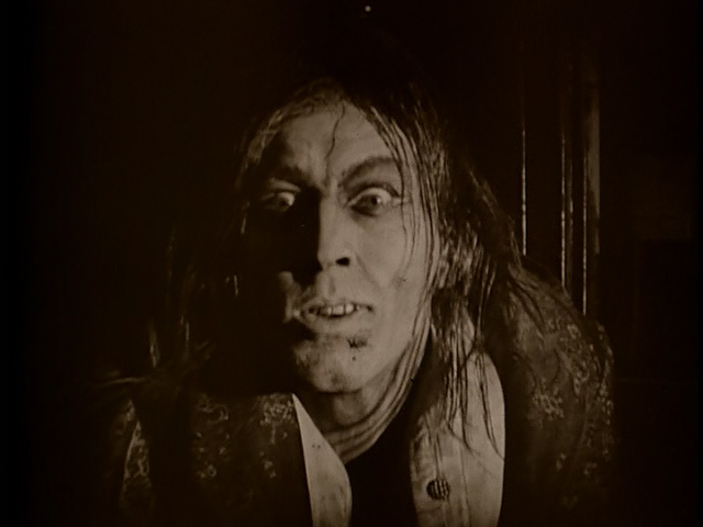 Barrymore employed elaborate makeup for the role of Mr. Hyde but the initial shots of the transformation are just him contorting the muscles in his face and affecting a stooping, jumpy walk. It’s quite effective.