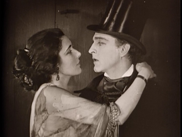 Sir George takes Jekyll to a music hall, presided over by Louis Wolheim in a small but colorful role. It is there that Jekyll gets his first eye-full of temptation in the form of Gina (Nita Naldi, looking lovely in her first feature film role), an Italian dancer. Sir George summons over the very interested Gina but Jekyll is overcome with guilt and flees.