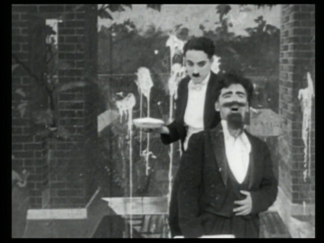 Chaplin had performed in an act called Mumming Birds in England and he adapted the material for the motion pictures. Movies gave Chaplin the ability to play two characters simultaneously and he took advantage of this playing both the posh drunk Mr. Pest and the working class reprobate Mr. Rowdy (though it should be noted that they at no time share the screen). While Chaplin’s Tramp character was his most popular, he still dusted off his high-hatted lush on occasion. The walrus-mustachioed Mr. Rowdy is less typical and Chaplin is almost unrecognizable in the part.