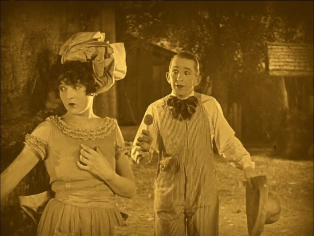 And so we are off the Kansas! Dorothy (Dorothy Dwan, the newly-minted Mrs. Larry Semon) is a sassy little number who is about to turn 18. She has two farmhands as suitors: Oliver Hardy and Larry Semon. (The characters are not given names so I will just call them Larry and Oliver.) She also has a sweet Aunt Em (Mary Carr) and an Uncle Henry (Frank Alexander), who doesn’t seem to like her very much.