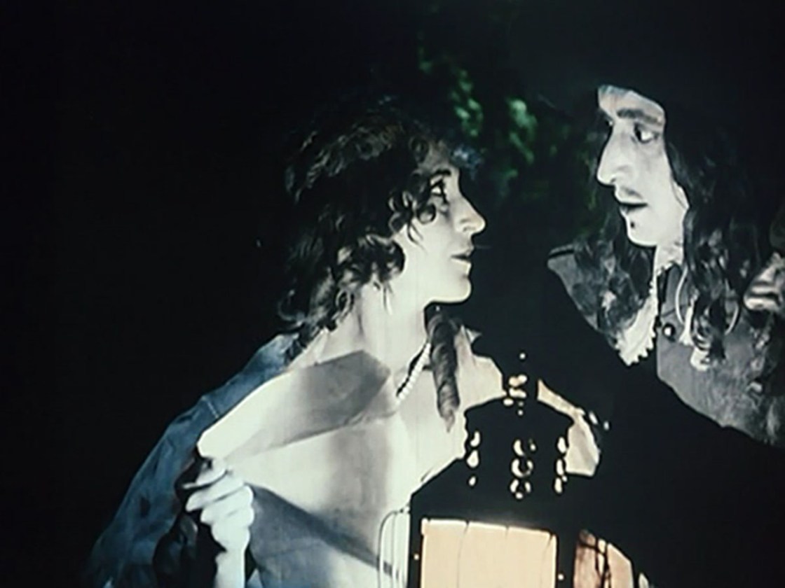 The famous tale of Cyrano de Bergerac is lavishly adapted for the silent screen, complete with stencil color. The story has been lifted so many times for romantic comedies that it almost needs no introduction: Cyrano, brilliant but marred by an outlandishly large nose, loves the beautiful Roxane. She, however, loves the handsome but vapid Christian. Can the two men combine to become the perfect lover?