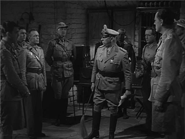 As propaganda pictures go, this one is quite excellent. Of course, the Nazis make perfectly hissable baddies in any movie but this time they are also fairly deep characters. Anyone can don a German uniform and goosestep around doing villainous things villainously. Wilder and von Stroheim manage to make the fictional Rommel much more interesting. A soldier’s soldier, Movie Rommel is ruthless and arrogant but not without humor and a strange sense of honor. (The real Rommel, you will recall, was forced to commit suicide for his part in an attempt to assassinate Hitler.) Schwegler seems to be in war for the girls but he would rather talk them into bed than resort to the Hunnish tactics of his Great War celluloid forbearers. Are the Nazis the bad guys? Of course. But they are also actual characters and all the more dangerous for it.