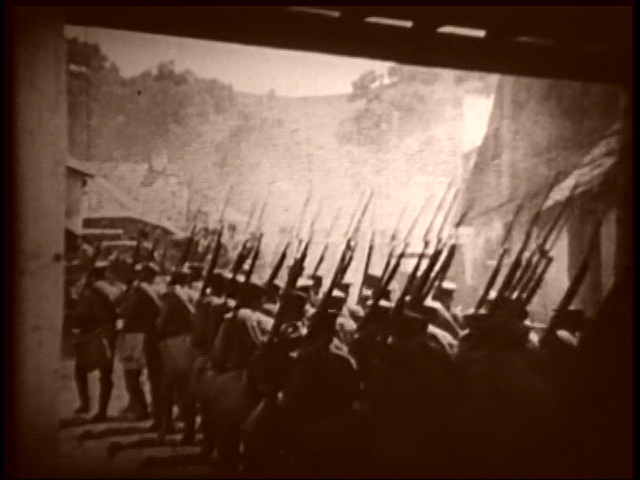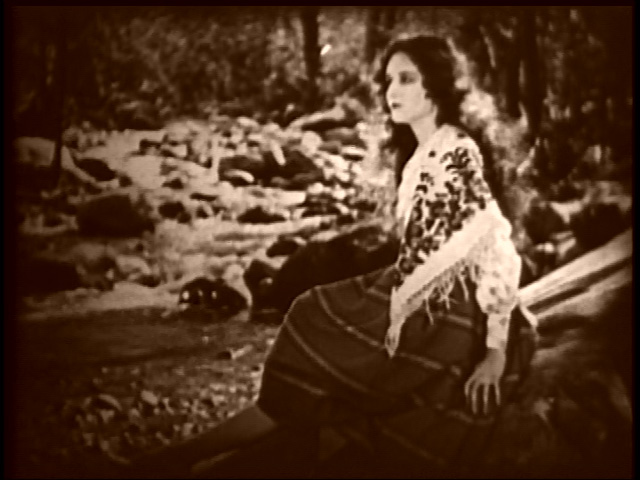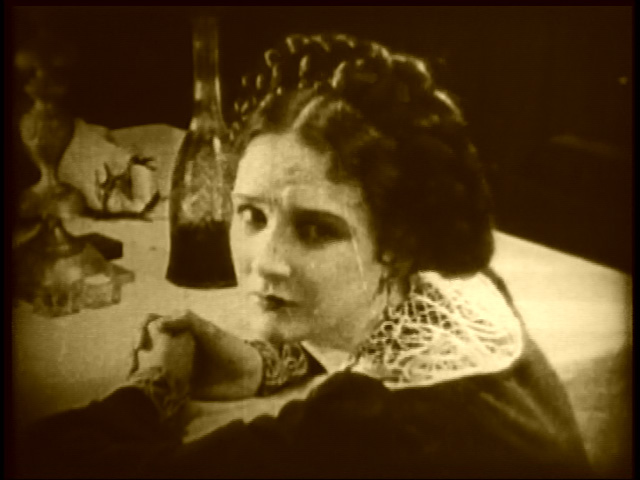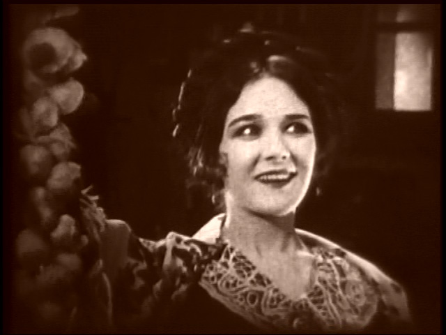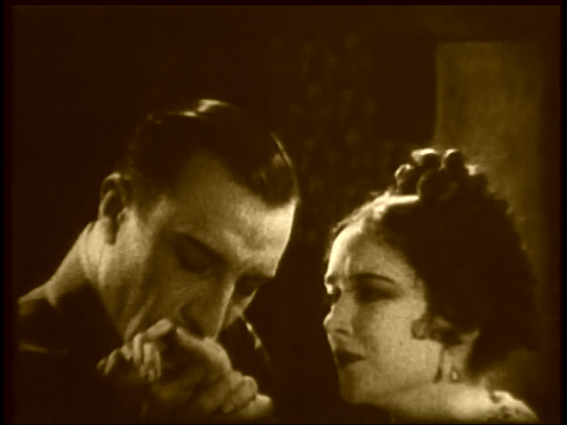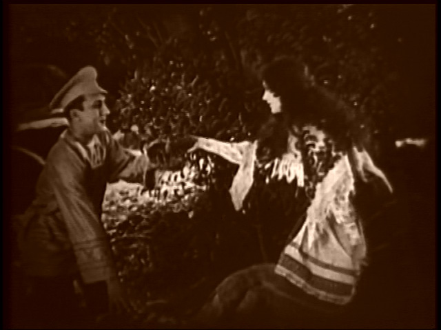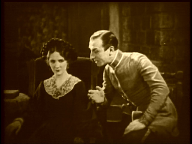 Surrender was released on DVD by Grapevine. Originally released at an 8-reel length, this version runs just 77 minutes. Assuming even a fairly speedy projection rate, that is about 12 minutes per reel or 96 minutes. From Brownlow’s description of (what sounds like) the more complete print he saw, it seems that there were some scenes of village life that got cut from this version. A pity. (Silent films were often sliced down for re-release, this is not Grapevine’s fault.)