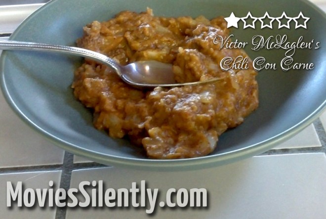 Mr. McLaglen, I loved you in Gunga Din but leave the chili to the Texans. In fact, I dare say that the three most terrifying words he could ever say are, “I made chili.”