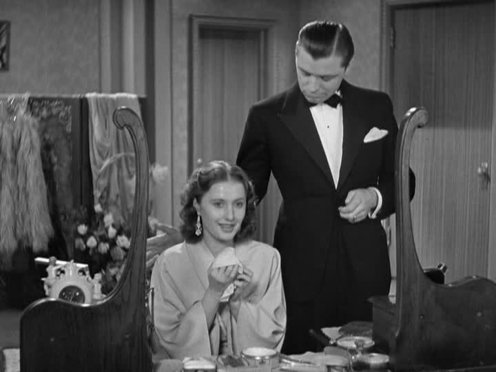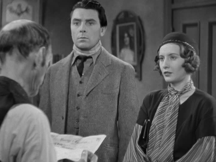 Jim Gilson (George Brent) is a cheapskate oaf with a head cold. He figures that he has struck matrimonial gold and whisks her off to the justice of the peace. (But why does he never ask why her name is Joan and not Emily?) Later, back at the farm, he gets all Sheik on his blushing bride, who responds by socking him in the kisser. A little later, she spots him bent over a stubborn stain on the floor and starts to think that he (or his backside) is awfully cute. Jim is still huffy and refuses all advances. (If this guy were any stupider, Joan wouldn’t marry him, she would water him.) And, of course, the farm is in hock to the bank and the whole thing turns into a “you must pay the rent, I can’t pay the rent” sort of tale.