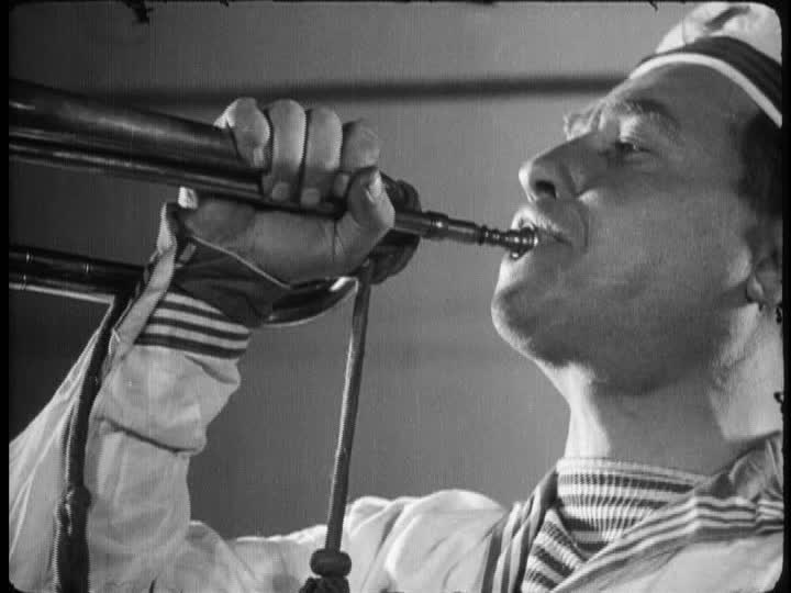 Imig succeeded splendidly. While the music is old, the arrangement is very modern. Older film scores are generally higher and rely more heavily on strings. (Check out some of the original Vitaphone or Movietone scores to hear what I mean.) Modern film scores are generally deeper, more horn/brass-centric and will make heavier use of percussion and industrial sounds. This industrial sound fits very well with a film that has a battleship as its main character.