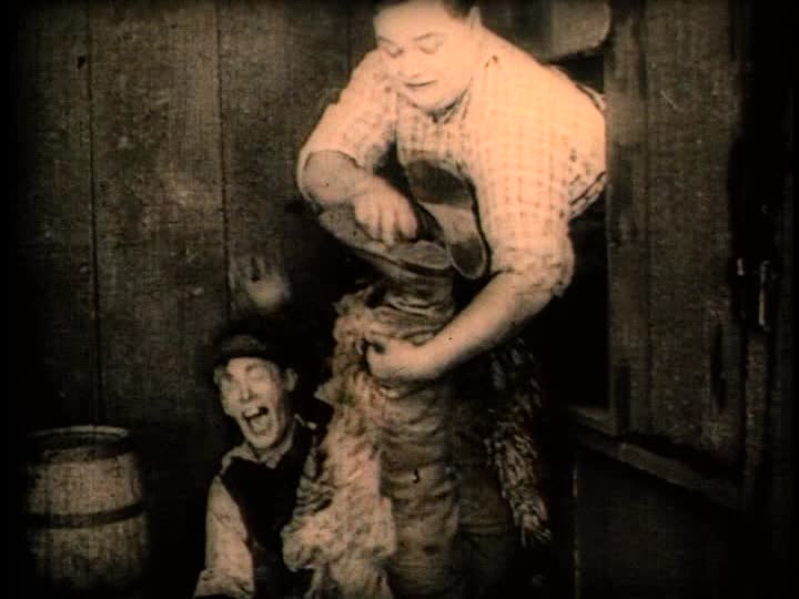 Oh, one quick side note. There seems to be a notion floating around that Arbuckle never made fat jokes. Of course, anyone seeing Arbuckle’s work will soon realize that this is not true. There are several weight jokes in Out West, most of which involve Arbuckle bending over or emerging bottom first, and this short was not unique. There are not a lot of these gags but they are there.