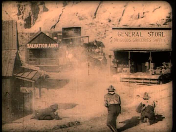 The final battle between St. John’s bandits and the combined forces of Arbuckle and Keaton is a mad romp with plenty of shootouts and zany humor. Its scale is impressive considering that this is just a two-reel short.