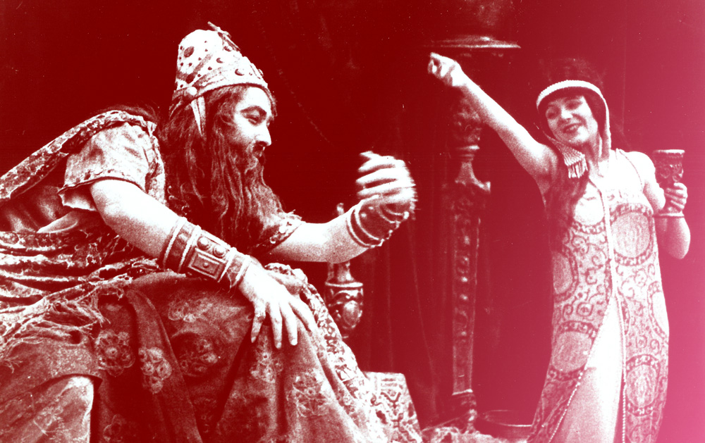At this point, the tale departs from the ancient text. The film is not based on the original book of Judith but on the play by Thomas Bailey Aldrich. (Read a public domain copy online here.) While the original Judith took down Holofernes without hesitation, the Judith of the play and the film balks. She is falling for the Assyrian.