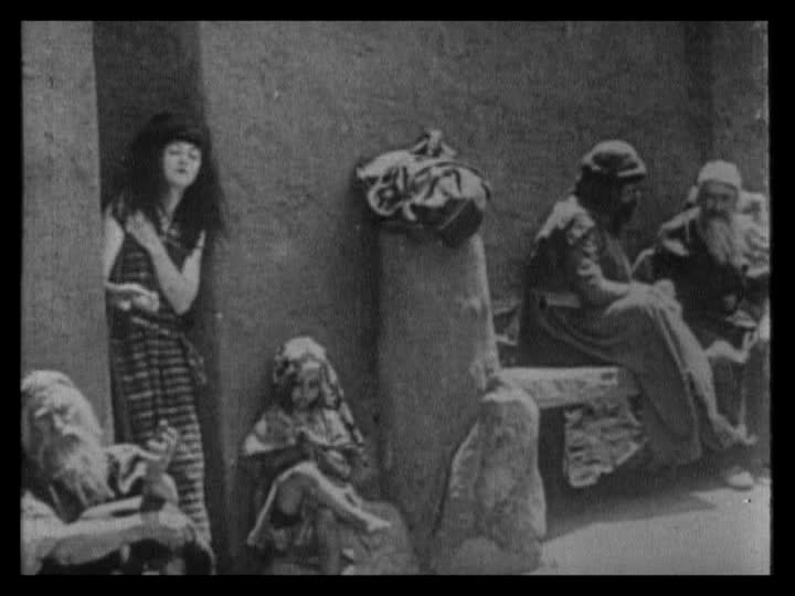 The town of Bethulia is a walled outpost with its wells on the outside. (This surely will not prove to be a problem later.) Judith (Blanche Sweet) is a wealthy and respected widow, renowned for her charitableness and religious devotion. Among those who benefit from her generosity are the Gish sisters.