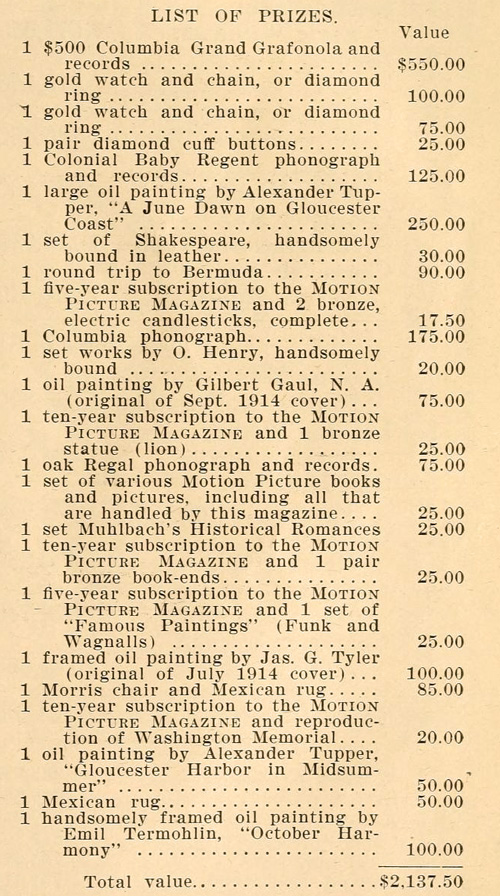 I am intrigued by the $50.00 Mexican rug. No details are given. A mystery. The rest of the prizes are weirdly random. Like the editors just went to a garage sale and saw what they could get.