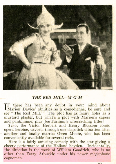 Roscoe “Fatty” Arbuckle, still struggling after his trials, was the director for much of the film. He took the name William Goodrich for the job but his real identity was openly reported in fan magazines.