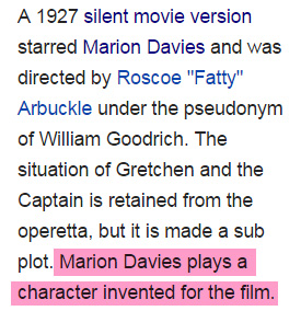 There is an erroneous notion that the Marion Davies character was invented for the film. She wasn’t.
