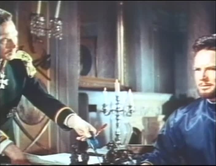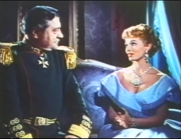Now I must be blunt. Steve Reeves simply cannot wear a cherkeska. He doesn’t know how to move in it and he certainly doesn’t know how to sit in it. The length of the coat seems to have completely befuddled him. Fortunately, he is not obliged to wear it for much of the story as the screenwriters find assorted ways to relieve him of his cherkeska, as well as his shirt and large sections of his trousers. Not to be outdone, Scilla Gabel (who plays the czar’s goddaughter) parades around in a sheer nighty and granny panties. I’m not sure any of this ever occurred to Tolstoy. (Leo! Honey! Baby! You need to add some sex appeal if you want your books to sell!)