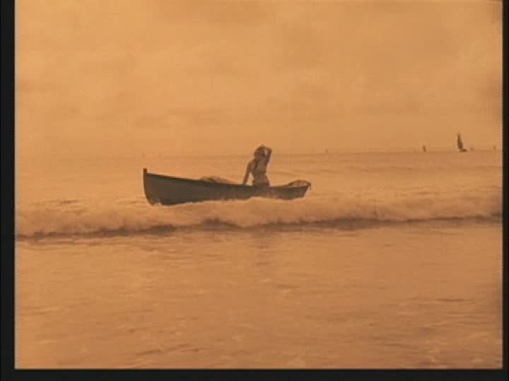 The next scene is the stuff of nightmares. Suzanne recovers from the drug and awakens to find herself in a boat in the middle of the ocean. The dying Captain d’Erquy is beside her and there are no oars. The boat is thrown about by the waves as she screams in horror.