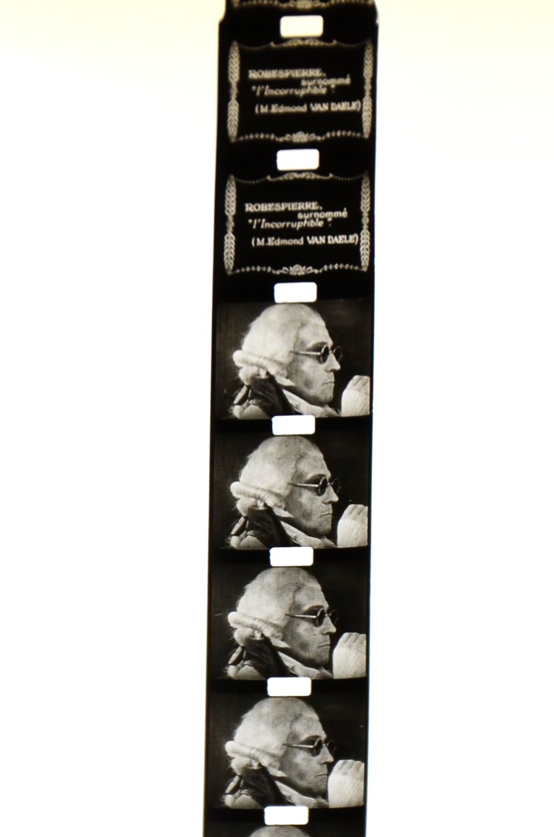 I mentioned affordability. One of the innovations that allowed Pathé‘s 9.5mm releases to save on film was the ability of the projectors to “freeze” on the title cards of a silent film (thanks to specially-designed notches on the title card frames) and resume at normal speed once the audience had read the dialogue and exposition. This reduced the required amount of film considerably, though it did limit how powerful the projector’s lamp could be. (Long exposure to strong light on just one frame is extremely damaging, even to safety film.)