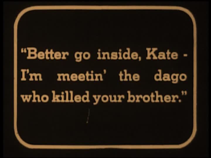 The Pathex film merely makes it clear that all the villains are Latino and the above title card illustrates the film’s attitude toward their ethnicity. (In this sanitized and censored print, our hero cannot have dark impulses or a propensity for violence but racism is A-okay. Told you this would be a fascinating look into past attitudes.) The Pathé Baby film keeps the Latino identity for the main villain but does not employ slurs in the title cards.