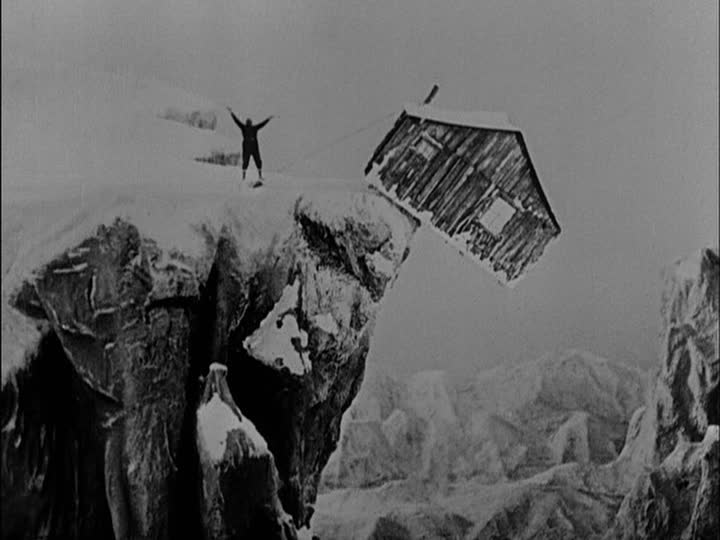 Special effect shots made the scenery look expansive and far more dangerous than it really was. Larson’s death scene, when a piece of a snowy cliff breaks off with him on it, is particularly well executed. Two shots were combined to make it look like the man was going over. There is a slight jitter but it generally looks excellent. Easily as good as some of the computer-generated effects foisted off on us today.