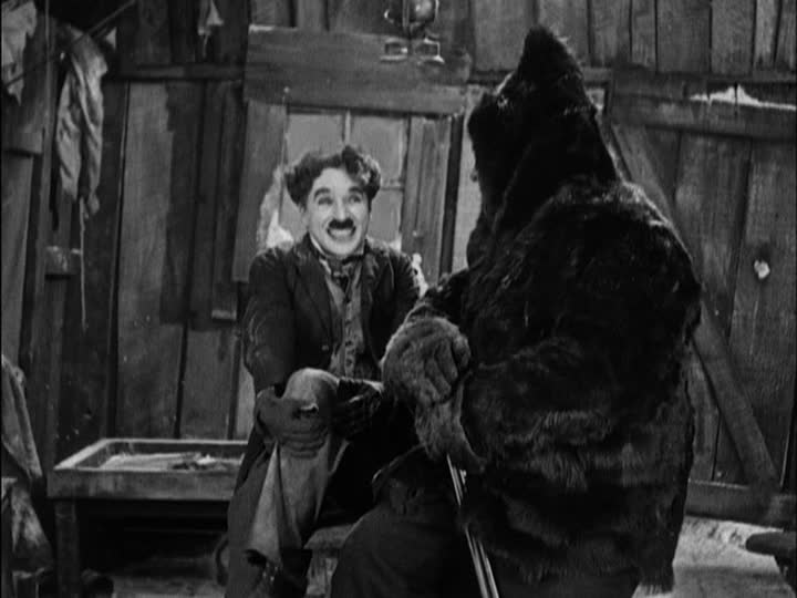 As noted above, The Gold Rush is rather dark around the edges. The bleak horror of frozen starvation serves as a counterpoint to make the jokes funnier. In the sound version, the narration is there to constantly assure us that, yes, this is a comedy and everything will be okay. So, we have softened suspense, which is never good.