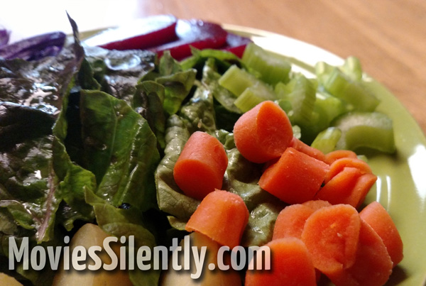 My Rating: 3 out of 5. This salad ain’t half bad but it’s missing some high notes of flavor. The French dressing might have helped but what the thing is screaming for is some craisins, tangy cheese or other intense flavor. I mean, it’s not a bad salad, it’s just a bit bland. Pretty but bland. Kind of like Norma Talmadge. (Ooo, burn!)