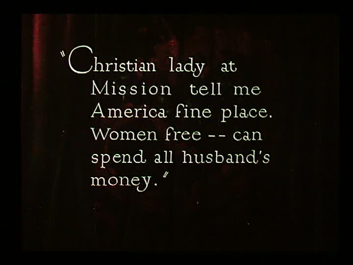 The title cards are an agonizing blend of phony Chinese-accented English and “Chinese” written in a typeface better suited to a cheap buffet. Some of them feature beautiful artwork but good lord are the words on them stupid. When they aren’t racist, they’re sexist and subtle they ain’t. Even the 1922 review in the New York Times complained about their lack of finesse. (It also praised Wong, as well it should.)
