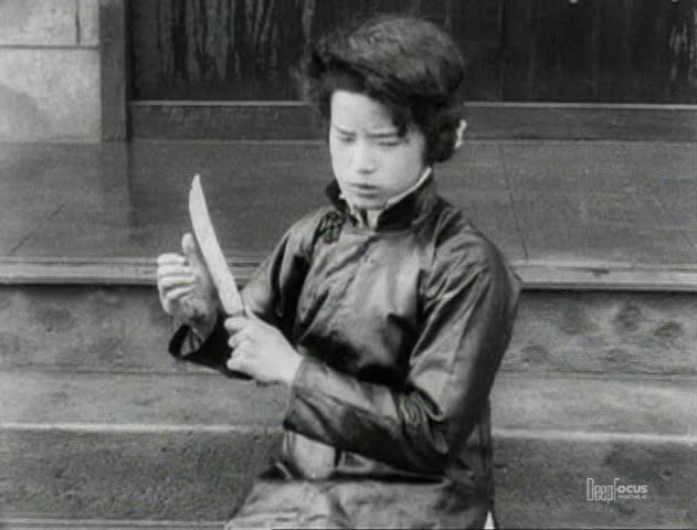 However, efforts to be agreeable have their limits. About halfway through the surviving footage, Violet Wong’s character is given a knife and encouraged to kill herself (her crime is not clear due to the missing title cards). She considers it for a moment but then she throws the knife away and storms off. This ain’t no Madame Butterfly, folks!