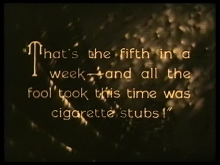 While some set pieces have the potential to be really exciting, nothing pays off. Film historian William K. Everson suggests that the picture may have been going over budget and needed to be cut off. In any case, any film with a plot that can be truthfully described as “the hero steals cigarette butts” is in the kind of trouble that no budget can fix.