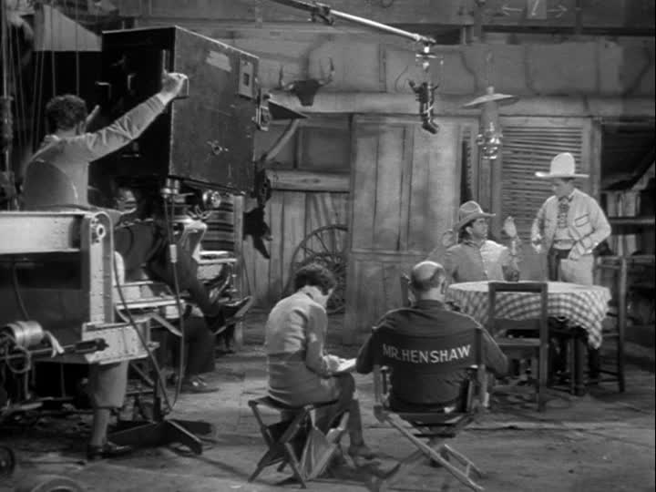 And now I must tell you something very strange that happened while I was watching the film. Henshaw, Buck Benson’s director, acts as the tough voice of reason in the picture, heartless but correct. He fires poor Merton because a movie cannot wait for one stammering extra, no matter how sweet. Later, he takes Buck to task for whining about Merton’s spoof.