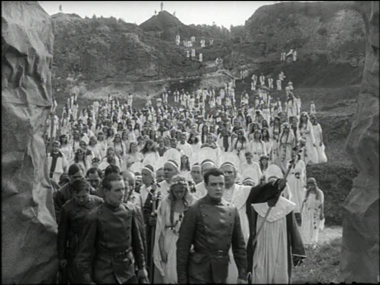 The second key problem with Himmelskibet is that it never manages to convey the appeal of the Martian culture to the audience. Oh, there’s peace and tranquility but like so many images of heaven, you can’t really imagine spending a day there, let alone the rest of your existence. This tranquility must have been appealing to some in the wartime audience but I wanted a little more than just diaphanous robes of mercy, innocence, longing, whatever… Look, it’s a nice thought but just saying that love is all you need doesn’t cut the mustard, especially when no further details are offered. Modern viewers have decades of hindsight and the 1960s hippy movement in their memories. Turns out love is NOT all you need.