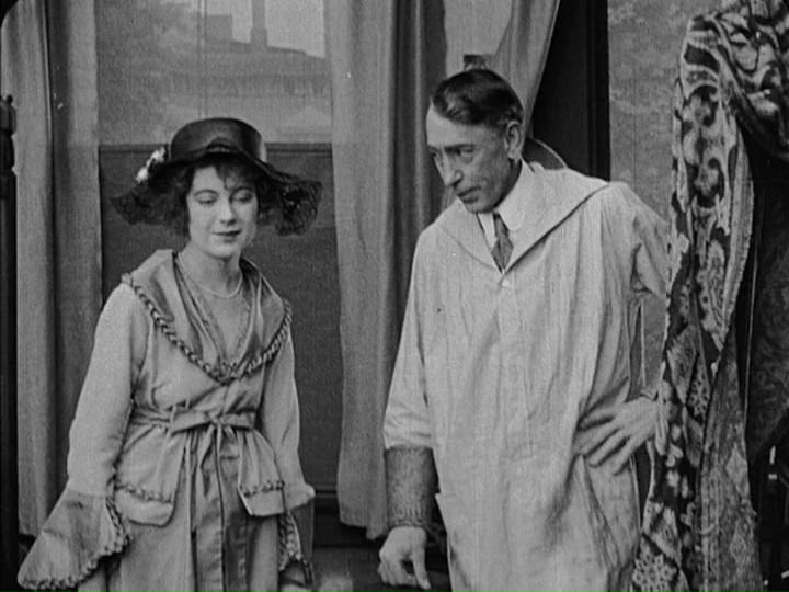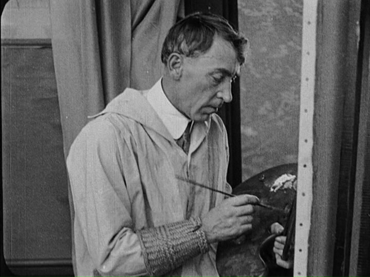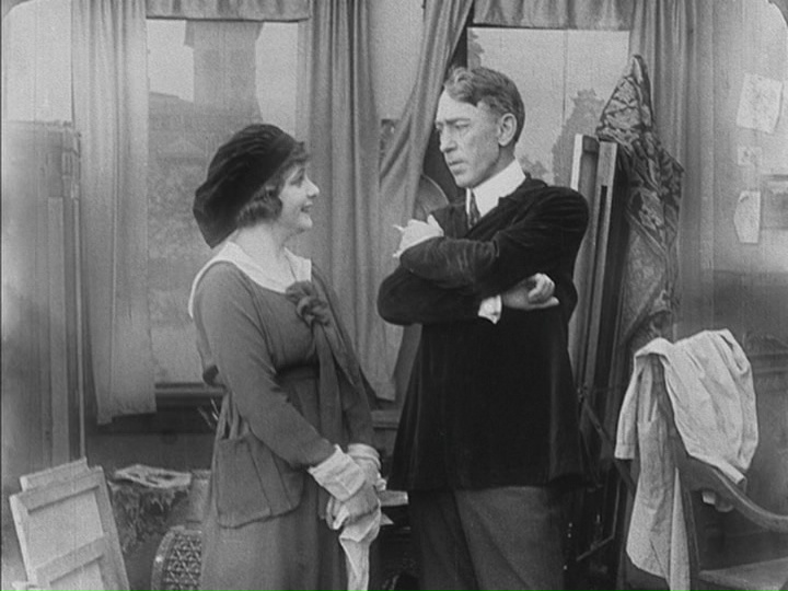 Tully Marshall plays John Minturn, an artist in the middle of a painting. His work is delayed because his model, Renee Duprez (Norma Talmadge), is “ever an ardent worshipper worshipper at the shrine of Morpheus.” In other words, she likes to sleep in. (Get used to the purple title cards, the film is full of them.)