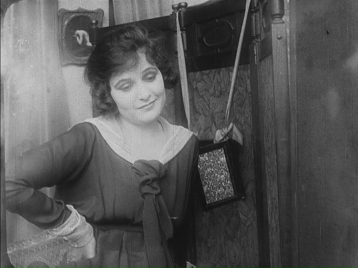 Alas, the rest of the cast is not up to the same level. Marguerite Marsh has her famous younger sister’s sensitive features but not her acting ability. She does well enough in happy scenes but once the picture turns dark, she seems lost and not terribly interested in emoting. When Tully Marshal attempts to inject her with drugs, which should have been a melodramatic highlight, her struggles are half-hearted. I’ve seen people swat away mosquitoes with more vigor. Her lethargy is especially noticeable when contrasted with Talmadge’s spunk.