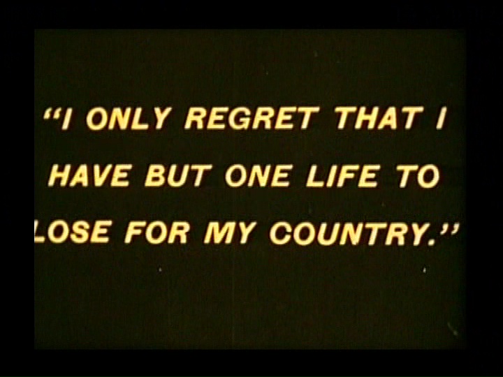 History finally takes over from here, though I should note that the hanging scene is not at all graphic. Hale makes the speech that he purportedly made just before his death and we are shown a statue of him in modern times.