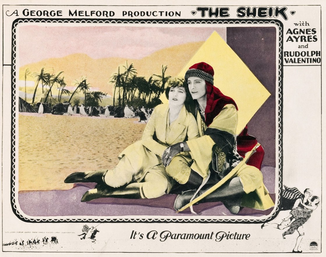 Like most silent movie fans, I also enjoy the quirky marketing materials of the era. Posters, lobby cards, ads, etc. I recently ran across a lobby card for The Sheik and a few things struck me as pretty funny. Let’s share!