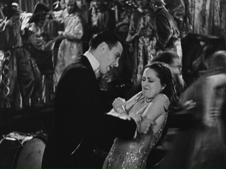 Gwen Lee and Billie Dove take very well to sound but La Rocque clearly struggles. His voice is fine but his delivery is stiff and halting. (He picked up the pace slightly in later talkies but was never particularly natural, in my opinion.) And no crack against the Midwest but La Rocque’s Illinois patois just doesn’t suit his exotic name, looks and screen character. It’s like finding out Rudolph Valentino has a Cleveland accent. One does not want one’s Latin Lover sounding like Jiminy Cricket. (Compare La Rocque’s screen persona with fellow Midwesterners Henry Fonda and Jimmy Stewart. See what I mean? And by the way, Gwen Lee was born in Nebraska but puts on a vampy purr for the role. It suits her.)