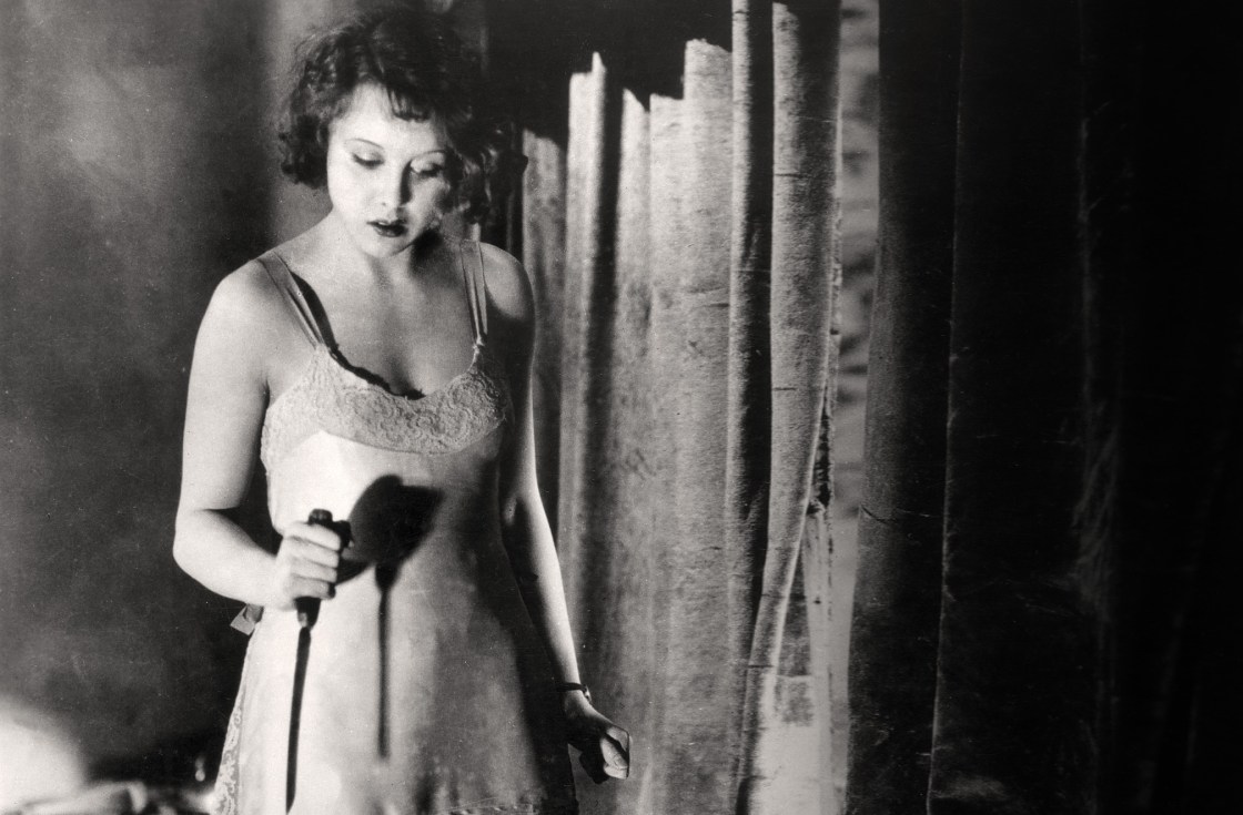 The most acclaimed sound sequence of the film is the “knife” scene. After the murder, Alice sits down to breakfast and her parents ask her to slice the bread. As you will recall, a bread knife was the murder weapon. At the same time, a nosy neighbor discusses the murder and as she jabbers on, her dialogue becomes unintelligible except for the repeated word “knife.” It’s a nice, dramatic use of the new sound technology and deserves all its acclaim.