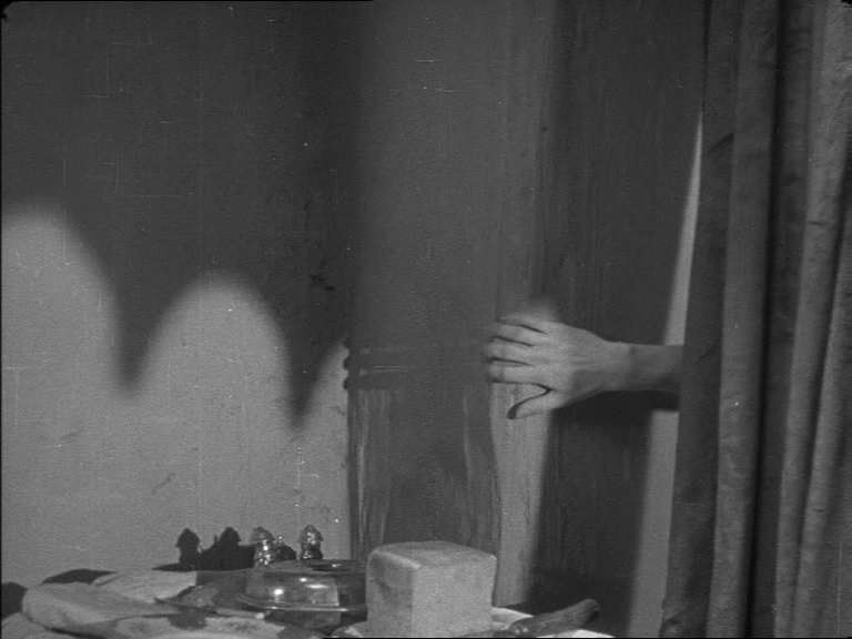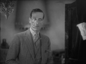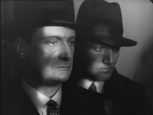 Blackmail shows that Hitchcock is still heavily under the influence of German cinema, of course, and he goes in for symbolic shadows. Alice is famously given a noose around the neck by a windowpane and I’ve seen this shadowy shot of Crewe described as putting a villainous mustache on his face but I read it as a skull, a foreshadowing of doom, DOOM! What do you think?