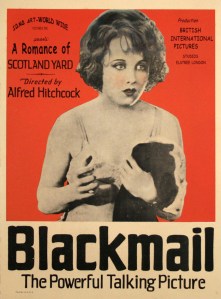 ‘Blackmail’ is good stuff. Lots of bits in it to keep you interested. And this lil’ ‘ol clip from youtube–an actual sound test for the film–shows Anny Ondra’s voice was fine…and shows Hitch was a master at playing to the camera years before his TV show: