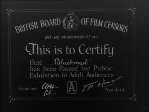 The sound version of Blackmail is the more famous and easier to obtain version by far but the silent version does survive. (It was common practice to release both silent and sound versions of the same picture during the talkie transition as many theaters lacked to means to immediately wire for the new technology. This continued into the 1930s.) We’ll be covering the silent film in the usual manner and then we’ll discuss the changes made for sound. Finally, we’ll decide which picture is more artistically successful.