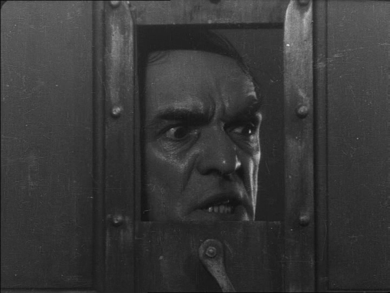 The sound film is further marred by small, interesting snippets that were excised in order to disguise the film’s silent origins. For example, the opening sequence closes quite literally with the peephole on the prisoner’s cell being slammed in his yelling face. Silent yelling is not permissible in a talkie and thus the cut.
