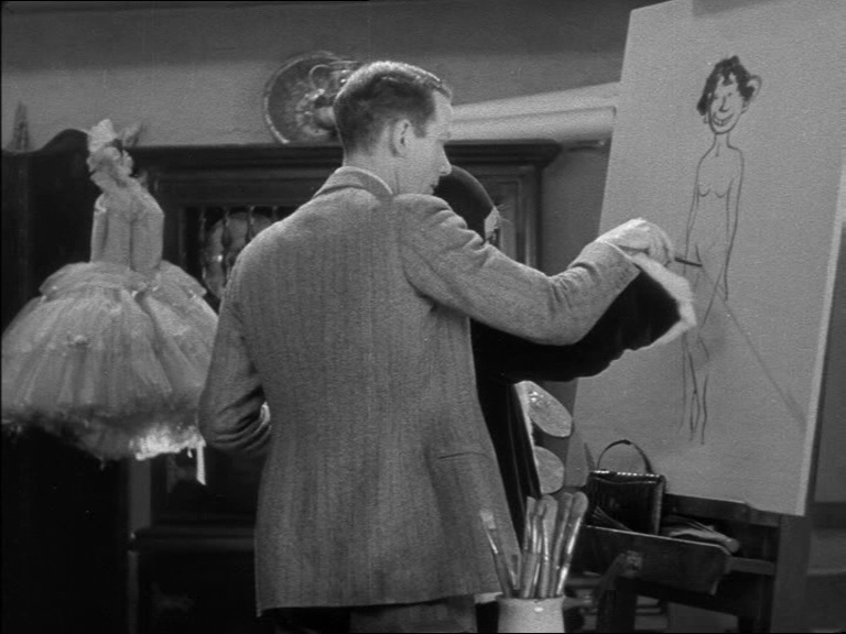 Before you can say, “Let’s look at my etchings” Crewe talks Alice into trying on a tutu (he would just love to sketch her) and then assists her with her pose. This leads to a kiss and Alice finally realizes that her date is no gentleman. She storms behind a screen to change.