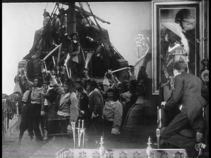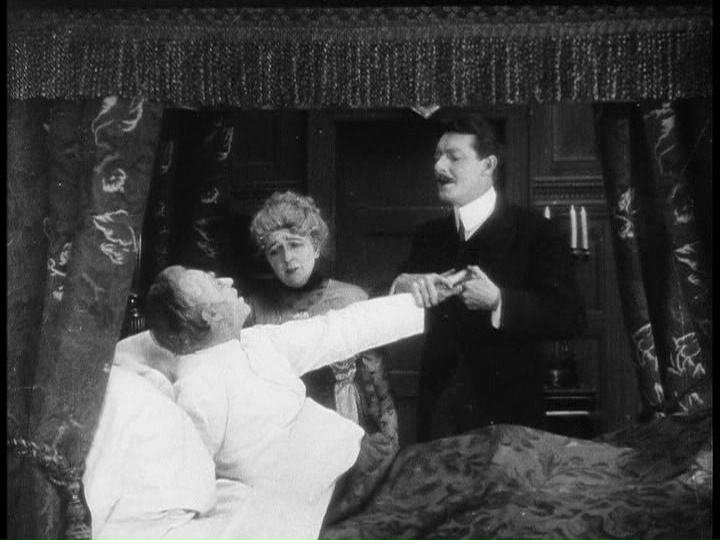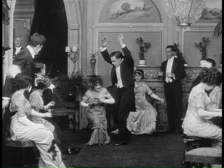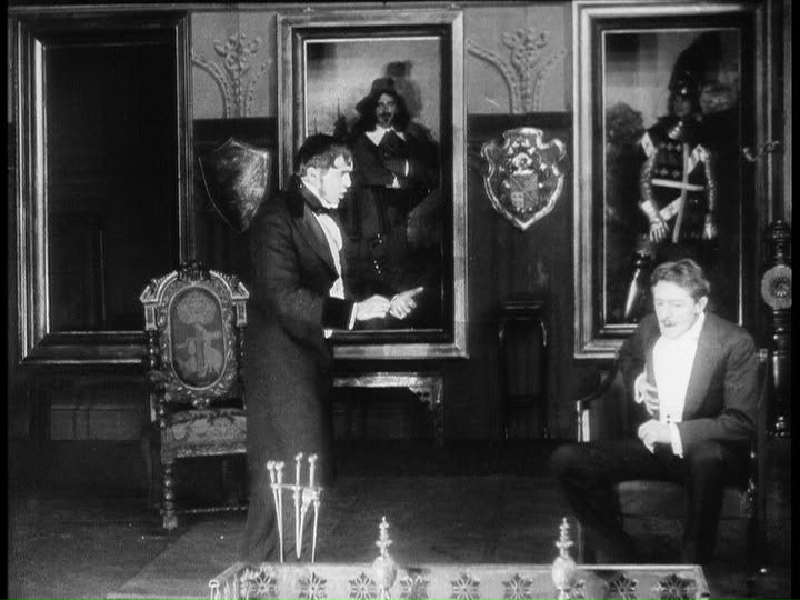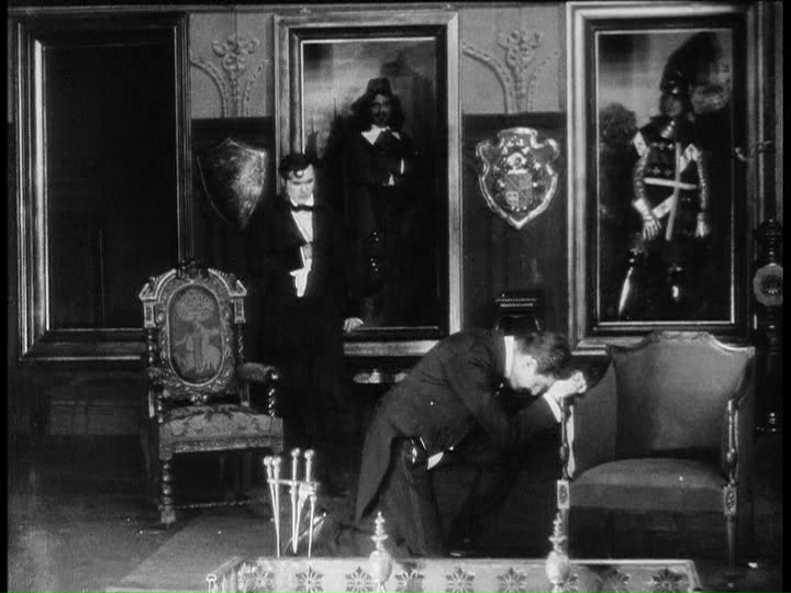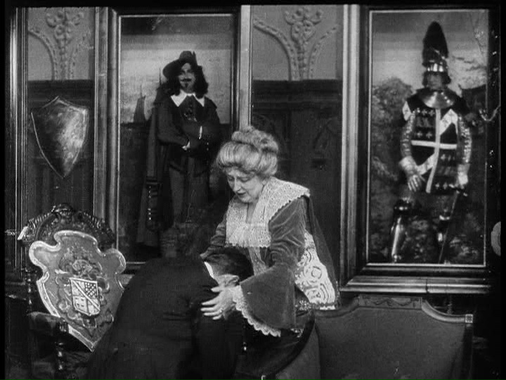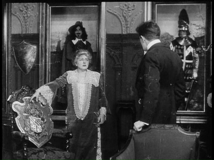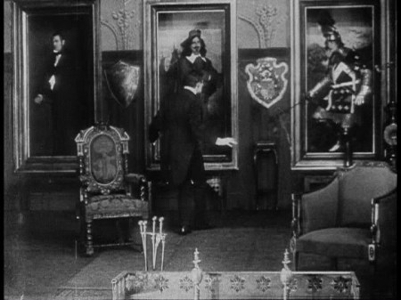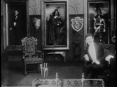 One by one, the portraits in the gallery come to life, step down from their frames and berate their descendent for his unworthy behavior. The Warrior (Walter Edwin) fought for the family name, the Admiral (Herbert Prior) left no blot on the name, which doesn’t seem like much of a brag, and the Statesman (Augustus Phillips) claims he left the name untarnished. Again, not terribly impressive. The first dude bled! I expect a little more effort on the ancestral front. (And no ancestresses? And not a dud in the whole lot? Of course, the duds probably didn’t get portraits.)