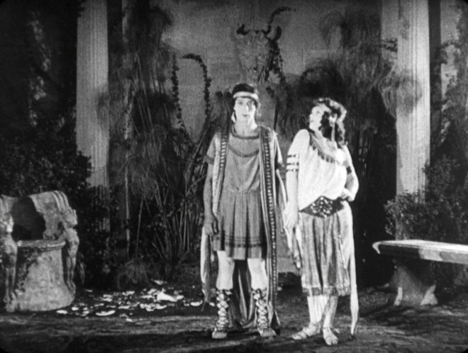 We also get an excerpt (not sure how much was left out) of D.W. Griffith’s 1912 caveman melodrama, Man’s Genesis. It’s all very goofy, as caveman melodramas are wont to be, but the Biograph team gamely caper and prance about in what look like very itchy grass and fur costumes. Robert Harron is Weakhands, who has to learn to kill a lunk named Bruteforce in order to win the love of Mae Marsh’s character, who is named Lilywhite because Griffith had certain… issues. (And by “issues” I mean he was a flaming racist.) In any case, Griffith’s Biograph shorts are pretty rare in HD and it’s nice to see this film on Bluray. It comes with a good piano score from Ben Model. (This extra was also included on the 2010 Kino Bluray.)