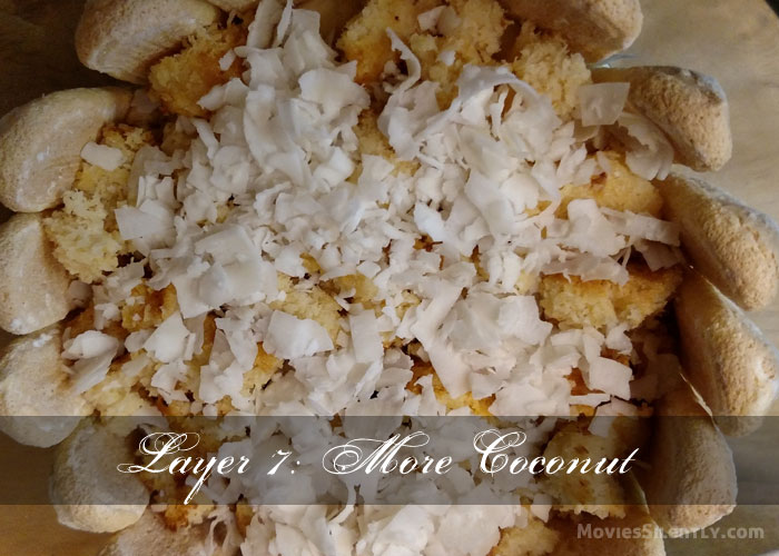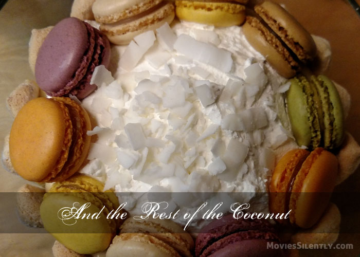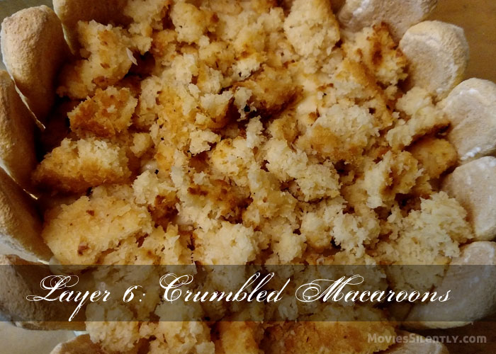 Because I was preparing this for a crowd, I made an executive decision and cut back on the coconut. A whole cup plus what was inside the macaroons? I wasn’t out to choke my guests, thank you very much. If I make this again, I will use even less and make it toasted. Or perhaps add some chopped macadamia nuts. I compensated for the lost coconut bulk by adding a layer of vanilla macarons.
