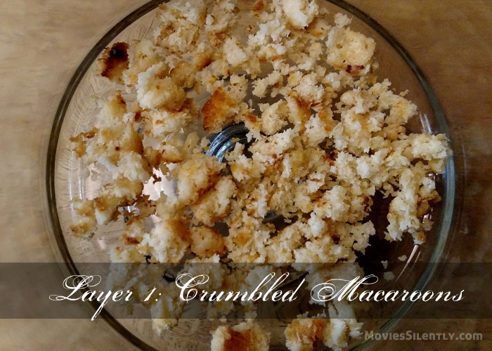 Because the recipe calls for macaroons AND coconut cakes, I took macaroons to mean macarons and coconut cakes to mean macaroons. Confused yet? The point is, I purchased frozen macarons from Trader Joe’s (pretty decent but if you have a good bakery nearby, you would obviously want to grab some from there) and a package of soft coconut macaroons.